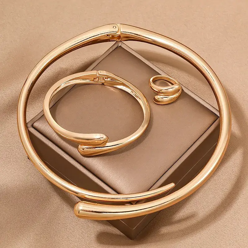 الصفحة الرئيسية اثاث قلادة وسوار وخاتم بتصميم عصري